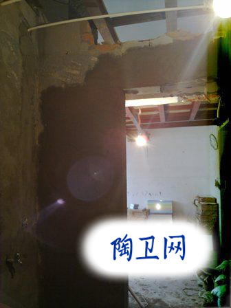 這里是新砌起來的衛生間入口,冰箱處的樣子,瓦工葉師傅的手藝看上去不錯的。