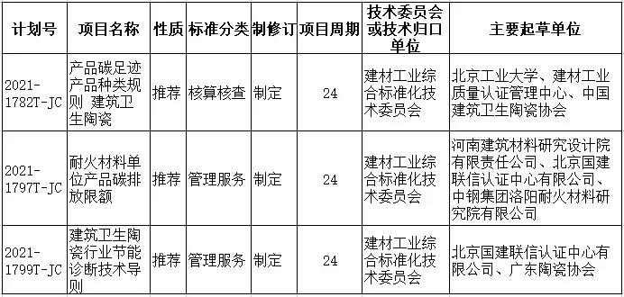 為發(fā)揮標(biāo)準(zhǔn)在推進(jìn)工業(yè)領(lǐng)域碳達(dá)峰碳中和工作的引領(lǐng)和規(guī)范作用,工業(yè)和信息化部于2021年12月22日下達(dá)了工業(yè)領(lǐng)域首批110項碳達(dá)峰碳中和專項行業(yè)標(biāo)準(zhǔn)制修訂項目計劃,其中,陶瓷行業(yè)共有3項(見附表)。本批行業(yè)碳達(dá)峰碳中和專項行業(yè)標(biāo)準(zhǔn)重點圍繞碳核查核算、低碳技術(shù)與裝備、低碳產(chǎn)品與企業(yè)評價、監(jiān)測設(shè)備與方法、碳排放以及綠色低碳建材評價、資源綜合利用協(xié)同降碳等方面。