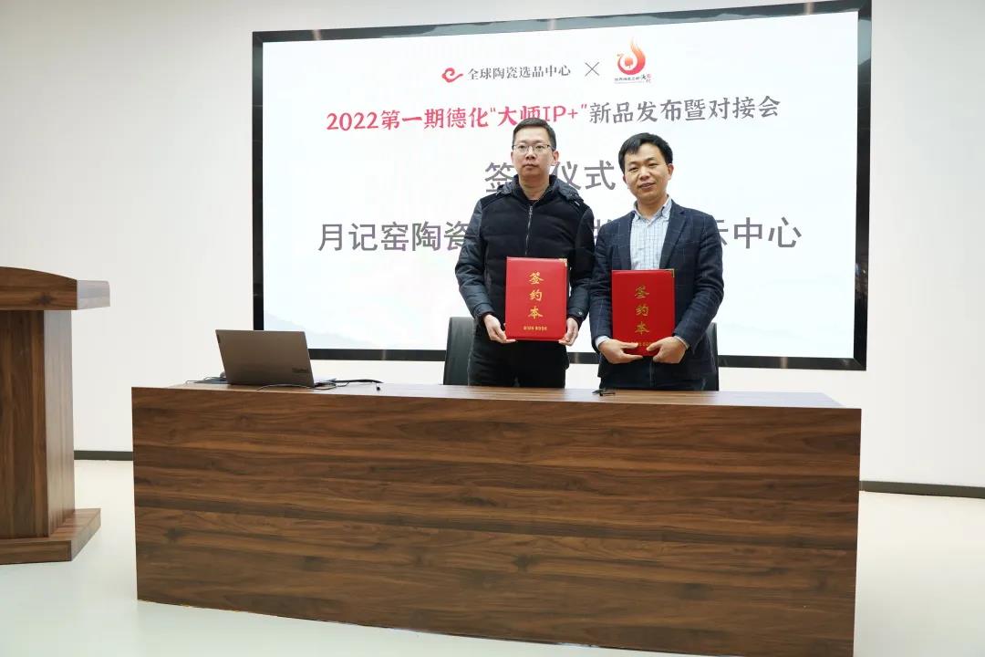 2022年1月18日,在第一期德化“大師IP+”新品發布暨對接會上,月記窯陶瓷與中瓷網絡·中國白推廣展示中心達成合作,簽署合作協議,位于晉江、廈門、福州的中國白推廣展示中心將為月記窯陶瓷品牌提供展示專柜,推廣“403年月記窯”名片,宣傳德化特色品牌。