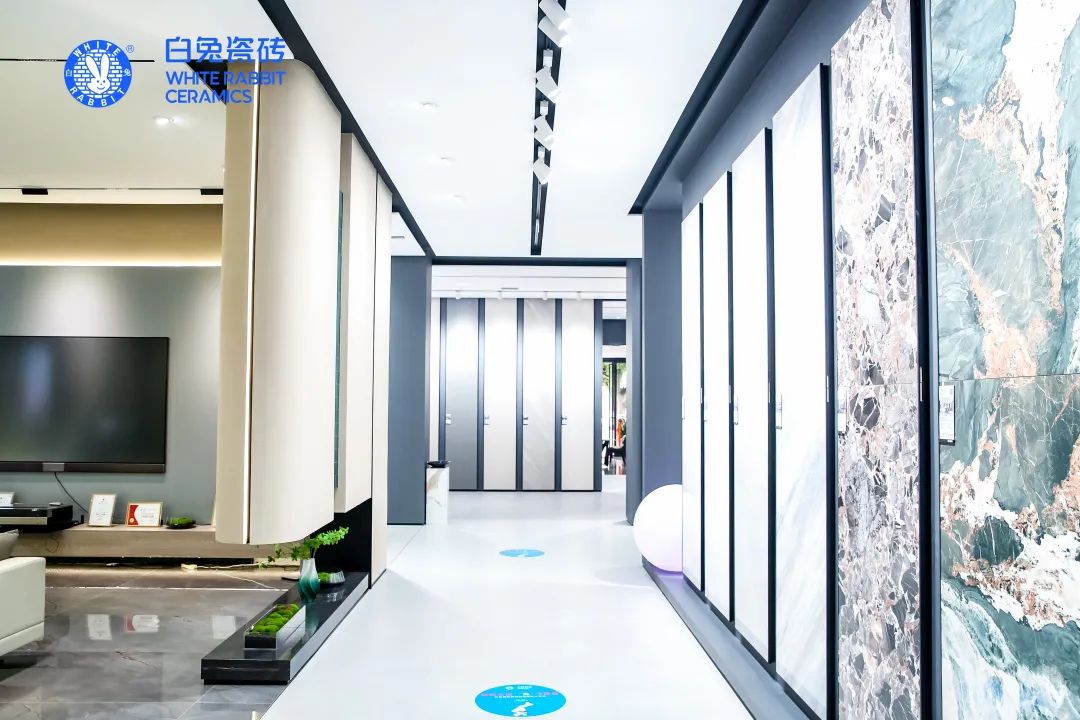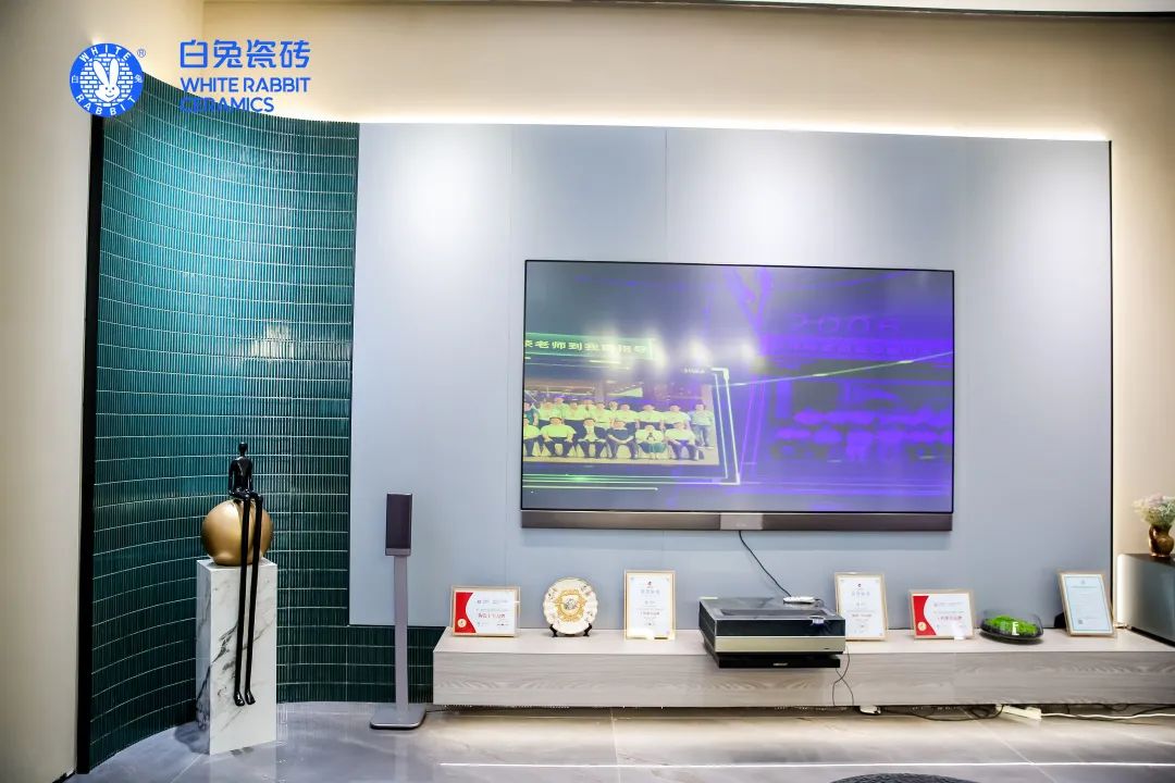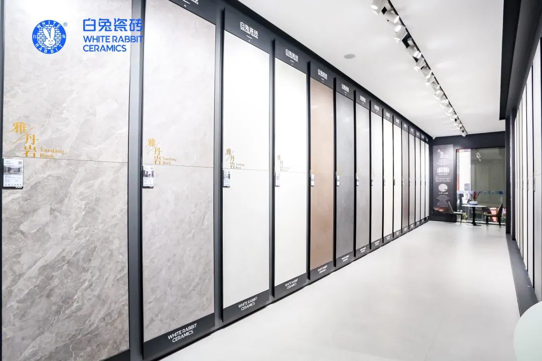 展廳內白兔瓷磚三磚新品一應俱全,從單品的品質細節、多元應用,到外墻空間、茶室空間等多樣化室內外全屋空間解決方案,精準滿足多元化終端消費需求,煥新消費者的人居生活體驗。