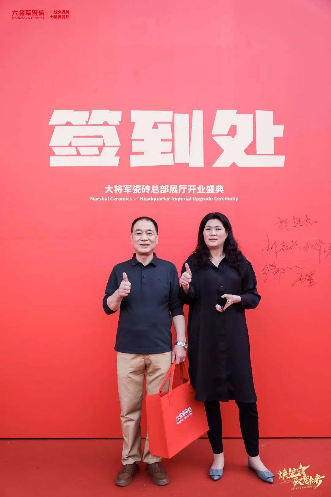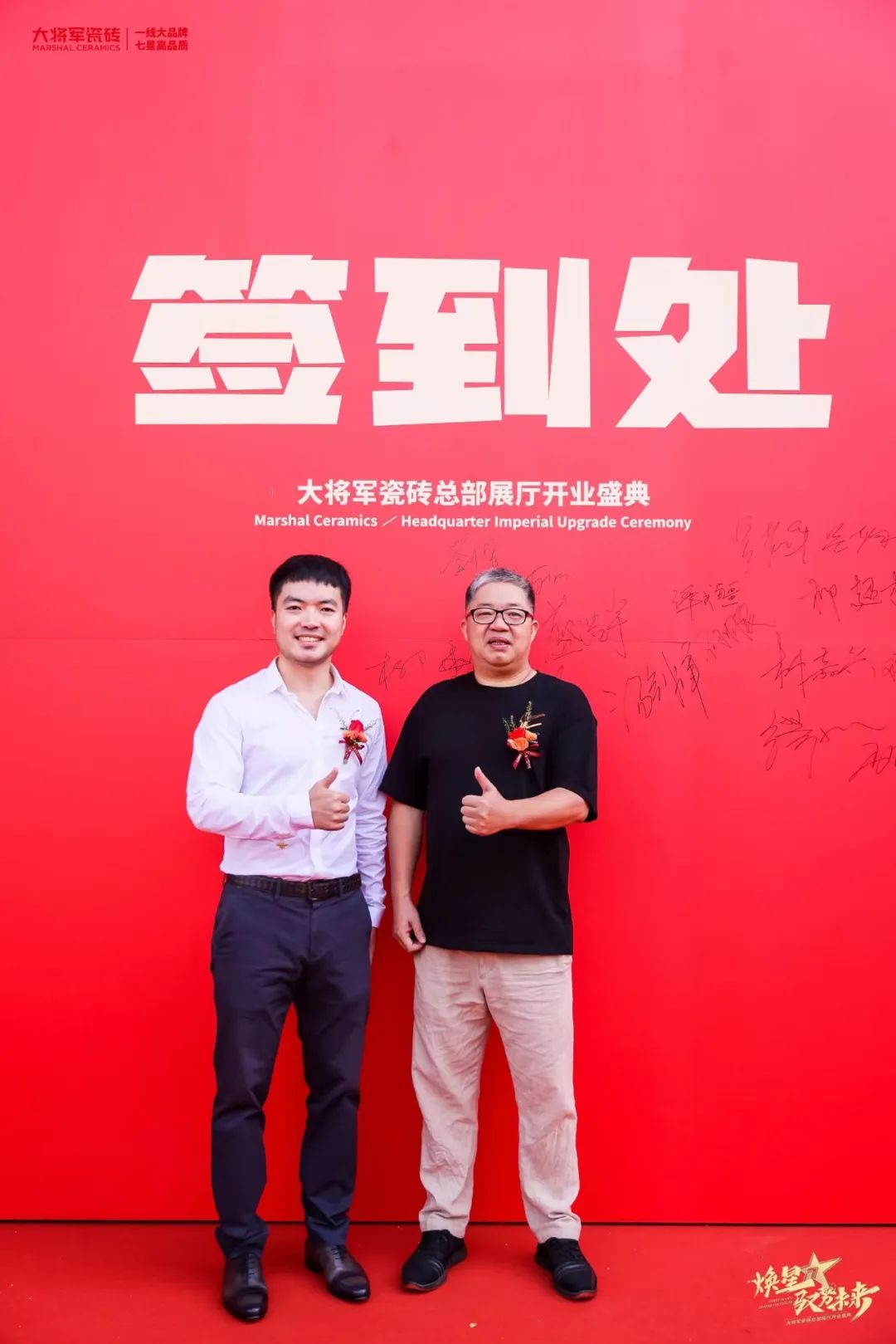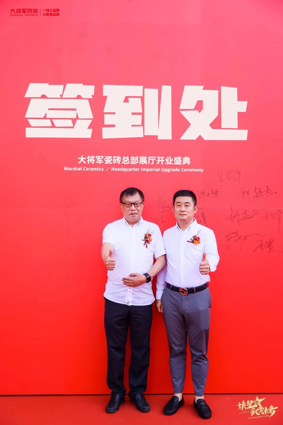 慶典當(dāng)天,鑼鼓喧天,醒獅獻(xiàn)瑞。花籃簇?fù)恚瑲g聲笑語。現(xiàn)場布置紅紅火火,處處洋溢著歡樂喜慶的氛圍。領(lǐng)導(dǎo)、嘉賓和經(jīng)銷商客戶陸續(xù)進(jìn)場簽到,共同祝賀大將軍瓷磚展廳開業(yè)大吉、財(cái)源廣進(jìn)、宏圖大展!
