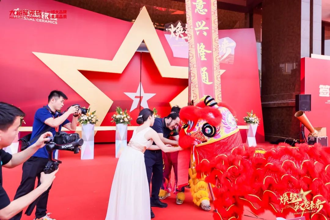 在振奮的舞獅表演后,大將軍瓷磚七星藝術(shù)館剪彩儀式正式開始。金剪裁得金路開,生意財(cái)源滾滾來。金色絲帶寓意著大將軍瓷磚鴻運(yùn)當(dāng)頭,八方來客,宏圖大展,再創(chuàng)輝煌蓬勃的發(fā)展之路。大將軍瓷磚七星藝術(shù)館終于揭開神秘面紗,總部營銷中心正式官宣,拉開了大將軍品牌發(fā)展新篇章。