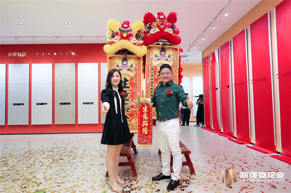 在四方賓朋,八方來客的共同見證下,由新強盛董事長許國強、新強盛企業總經理周嘉宜、廣東陶瓷協會會長陳環以及佛山市陶瓷行業協會秘書長尹虹為祥獅點睛,寓意新強盛企業生意蒸蒸日上!