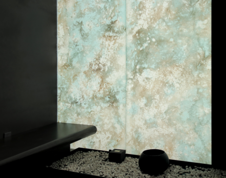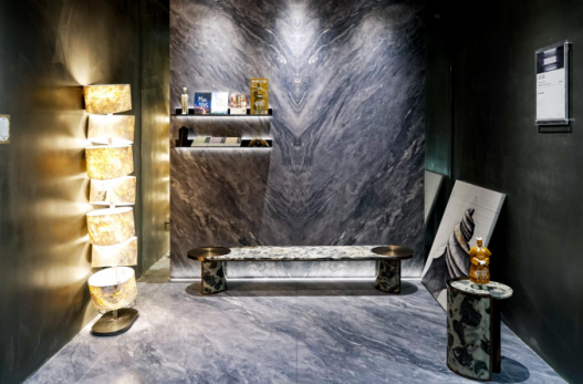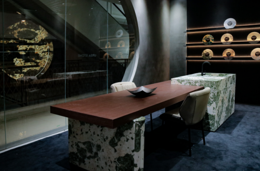 設(shè)計(jì)師通過(guò)材質(zhì)與色彩的對(duì)比,既界定了空間,又產(chǎn)生空間的視覺(jué)沖擊,通過(guò)奢石之美細(xì)節(jié)的呈現(xiàn),色彩和肌理、風(fēng)格碰撞出煥然一新的感覺(jué),呈現(xiàn)出豐富的視覺(jué)效果。全奢石空間應(yīng)用使場(chǎng)景在滿足功能使用的前提下,結(jié)合商業(yè)和文化、消費(fèi)群體畫像、西安本土文化等范疇,讓空間氛圍更具家居感和記憶點(diǎn),運(yùn)用奢石的肌理配合空間調(diào)性,突顯時(shí)尚、高品味的美感,讓消費(fèi)者充分感受到品牌的獨(dú)特魅力,并享受與產(chǎn)品的交互體驗(yàn)。