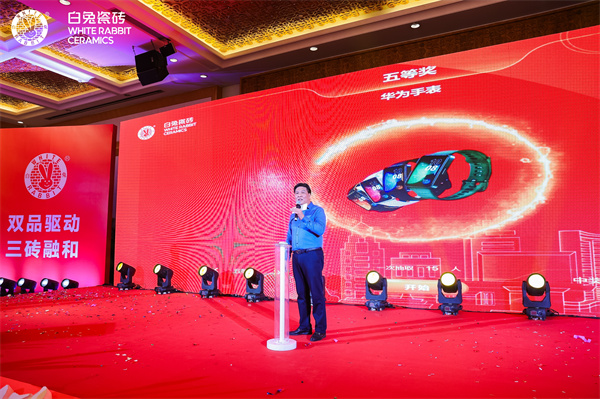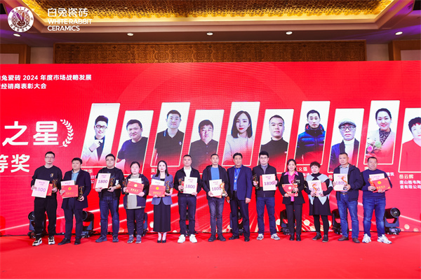 爭當表率,勇立潮頭。白兔瓷磚的發展壯大離不開所有經銷商家人們的努力付出,大會現場特為表現出色、業績優異的經銷商進行隆重的表彰和頒獎。表彰先進,致敬標桿,一份份榮譽獎杯和獎金,承載著公司對終端優秀經銷商卓越表現的認可和感激之情,他們的付出和汗水,鑄就了白兔瓷磚的榮耀與輝煌。