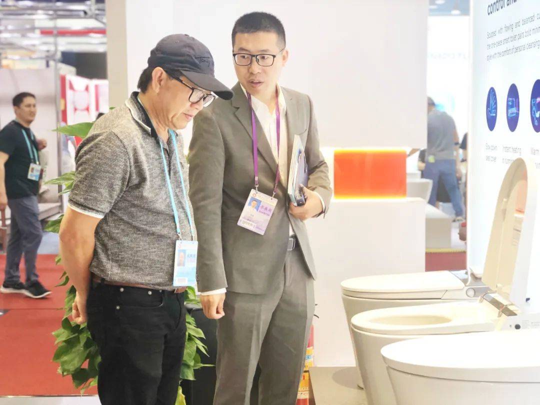 航標衛浴攜全系列高端產品驚艷亮相,向世界各地的采購商展示【中國衛浴產品】硬實力,除了當前流行的智能馬桶、掛墻馬桶,也有兼具性價比與功能性的傳統分體、連體馬桶,針對不同國家與地區的客人,提供不同特點的產品。