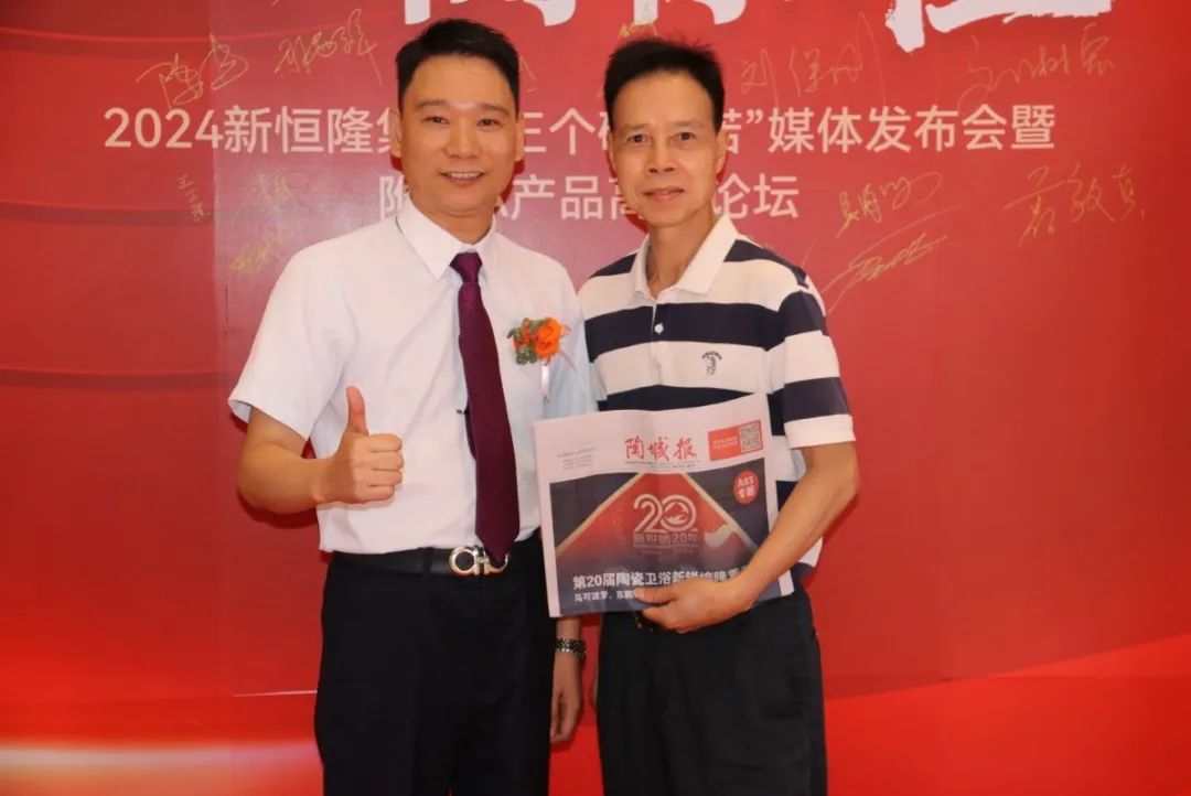 廣東新恒隆集團總經(jīng)理羅浩彬、廣東新恒隆集團營銷總經(jīng)理蔡旻高、廣東新恒隆集團品牌營銷總經(jīng)理羅順機、廣東新恒隆集團品牌營銷總經(jīng)理 羅浩鑒、廣東新恒隆集團市場總監(jiān)曾小娟等集團高層領(lǐng)導(dǎo)、特邀經(jīng)銷商代表和佛山市佛山標準和卓越績效管理促進會秘書長朱悅夫、佛山市質(zhì)量計量監(jiān)督檢測中心(國家陶瓷及水暖衛(wèi)浴產(chǎn)質(zhì)量檢驗檢測中心)部長吳清良、智造聯(lián)盟董事長金亞范、家居視界總經(jīng)理張英權(quán)等特邀重磅嘉賓出席了本次發(fā)布會,共同見證了這一具有里程碑意義的時刻。本次盛會還得到了智造聯(lián)盟、陶城報、中國陶瓷網(wǎng)、華夏陶瓷網(wǎng)、陶瓷信息、陶瓷資訊、佛山日報、設(shè)計好物、華人設(shè)計師、中國陶瓷家居網(wǎng)、陶瓷深度、陶瓷世界、華南家居網(wǎng)等一眾主流媒體大力支持和持續(xù)爭相報道,活動熱度不減。