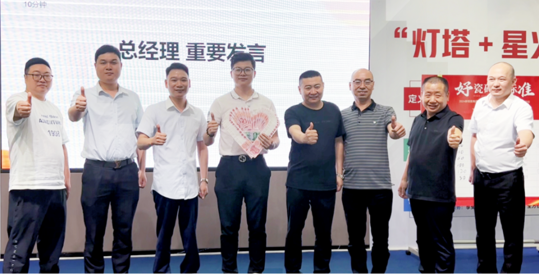 接下來,“三個硬承諾”傳播大使閃亮登場,他們將會是企業(yè)發(fā)展的有力推動者。每一位傳播大使接過沉甸甸的牌匾,表示著他們將肩負起企業(yè)使命,積極響應(yīng)總部號召,定能在未來工作中爭當表率,全力以赴,將硬承諾的宣貫落實到位,讓每一個消費者放心消費到物超所值的佛山瓷磚,共同打造高標準的佛山陶瓷企業(yè)形象,提升企業(yè)的美譽度與知名度。