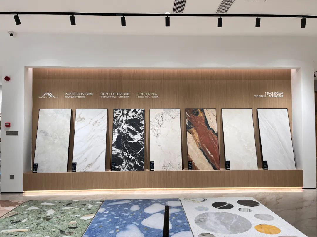 新云脈石·D系列作為去年云脈石升級版,升級后的產品不僅擁有初代產品所帶來的包漿感、玉潤感。還在全新定位膠水干粒的工藝技術加持下,使得其產品表面,實現了天然石材高低落差之間錯落有致的精微立體感,同時解決了市場上其他同類產品無法有效落地使用的根本問題,真正實現了1:1原石再造的獨特優勢,空間應用上將更加優雅極致,讓天然石材的真、潤、柔再度升華。而深刻質感磚系列,由多重工藝疊加,再加以模具和精雕而成,在花色開發方面,更是與國際同步接軌,全面平替西班牙墻磚。