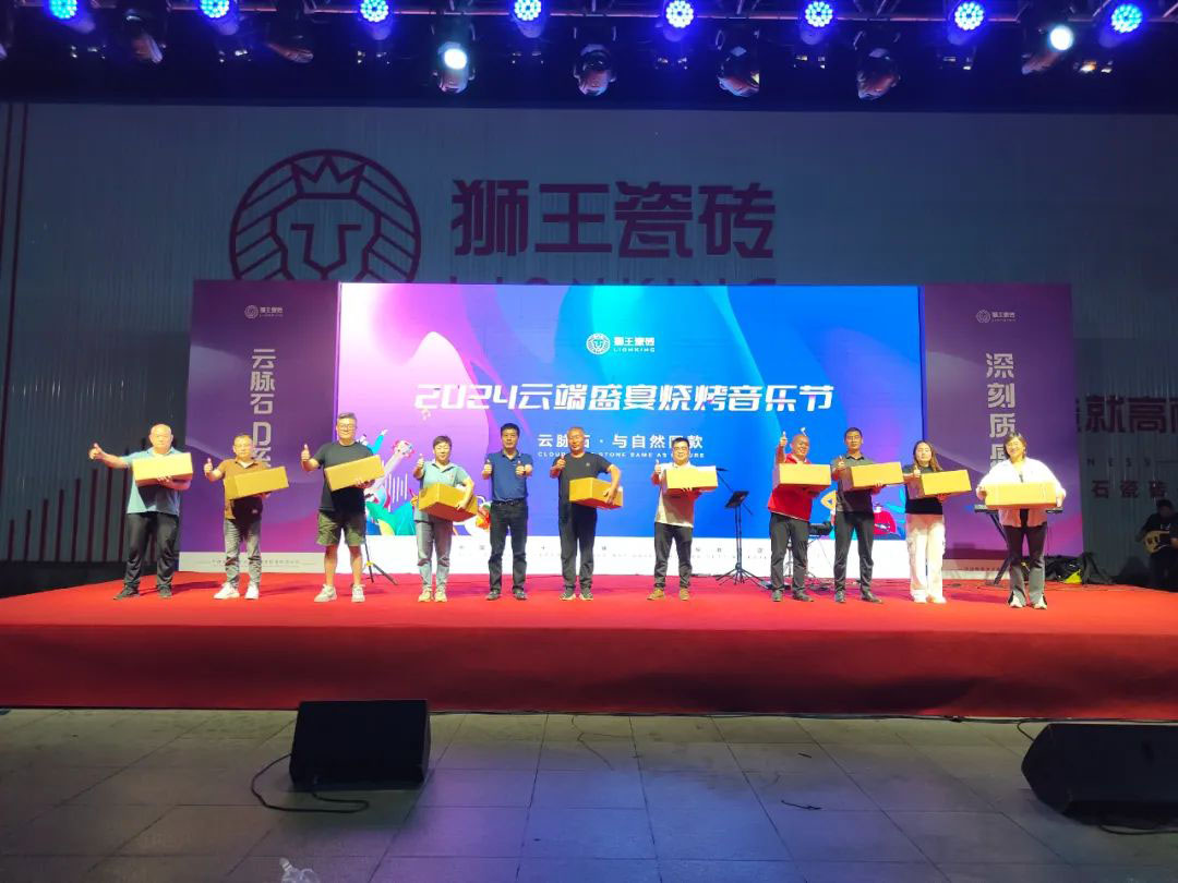 當晚,獅王瓷磚2024云端盛宴燒烤音樂節盛大啟幕,現場氣氛熱烈非凡。在璀璨燈火與歡聲笑語中,中國建筑衛生陶瓷協會秘書長宮衛先生、中國建筑衛生陶瓷協會流通分會秘書長劉勇先生、佛山中陶城集團聯席董事長兼總裁周軍先生、獅王集團董事長劉寶先生蒞臨現場,與獅王的全體家人們及眾多嘉賓共同參與了這一盛會。
