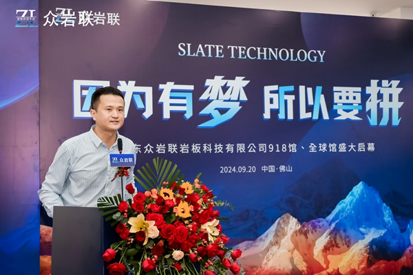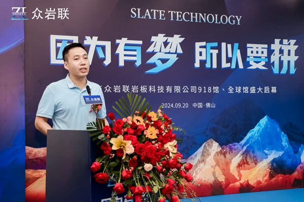 眾巖聯巖板董事長戴錦平,在致辭中,感謝各界嘉賓代表百忙之中來參加開業儀式。還說到,自己從小的時候,就一直有夢想,而夢想也伴隨著自己長大,堅持夢想,做好每一件事,每一個工作。現在的夢想就是:為美好生活做好每一片巖板,和10萬家創業型巖板企業勇攀高峰,成為全球高端墻面現貨巖板平臺引領者。因為有夢,所以要拼。現在有一群跟我一起追夢的事業伙伴,為了共同的夢想,努力拼搏,夢想到實現,從來不是一帆風順。眾巖聯巖板平臺從0到1的過程,充滿了挑戰與困難。比如資金的挑戰、市場的競爭、技術的瓶頸……每一個環節都考驗著我們的智慧和毅力。然而,正是因為我們這一群人有共同的夢想,才有了堅持下去的勇氣。我們也深知,只有拼搏,才能讓夢想照進現實。這也促使我們實現了一年多來的逆勢增長,銷售業績翻倍;以及我對巖板事業未來的信心、決心、恒心。