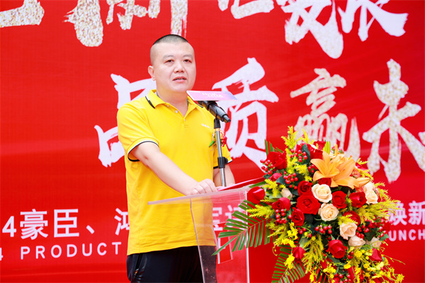 活動盛典伊始,裕輝集團·董事長羅國添上臺致開場詞,為整場大會奠定了基調,首先向全國經銷商家人們致以衷心的感謝,在過去的歷程發展中,裕輝集團一路斬獲優秀的業績離不開每一位經銷商的辛勤付出和緊密合作,同時強調新產品新工藝、生產實力和強化終端的重要性,我們要緊跟時代步伐,加大技術創新和產品研發力度,為各位經銷商伙伴賦能,提升競爭力和市場占有率,讓我們攜手追夢,共創美好未來!