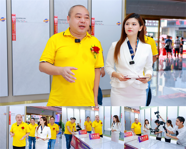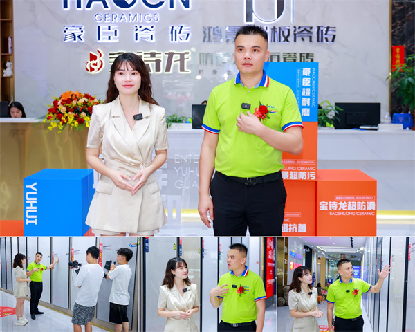 隨后直播伊始,跟隨著裕輝集團·董事長羅國添腳步來到了產品煥新升級展示區域,羅總分別從工藝、設備、材料等多個角度闡述了此次產品煥新升級優勢,強調產品磚坯白度提高、釉面亮度更透徹,打造出性能更耐磨、更防污的高質量產品,磚面更平、更透、更自然。拒絕水波紋、拒絕R角、拒絕棍棒印、拒絕切割裂,解決建陶行業終端痛點,還融入了更多創新元素和個性化設計,堅持以客戶為中心,重視用戶體驗,以滿足不同消費者的需求。產品煥新升級發布會現場氣氛熱烈,經銷商們和線上觀看直播的朋友們都對升級后的產品表現出濃厚的興趣和信心。