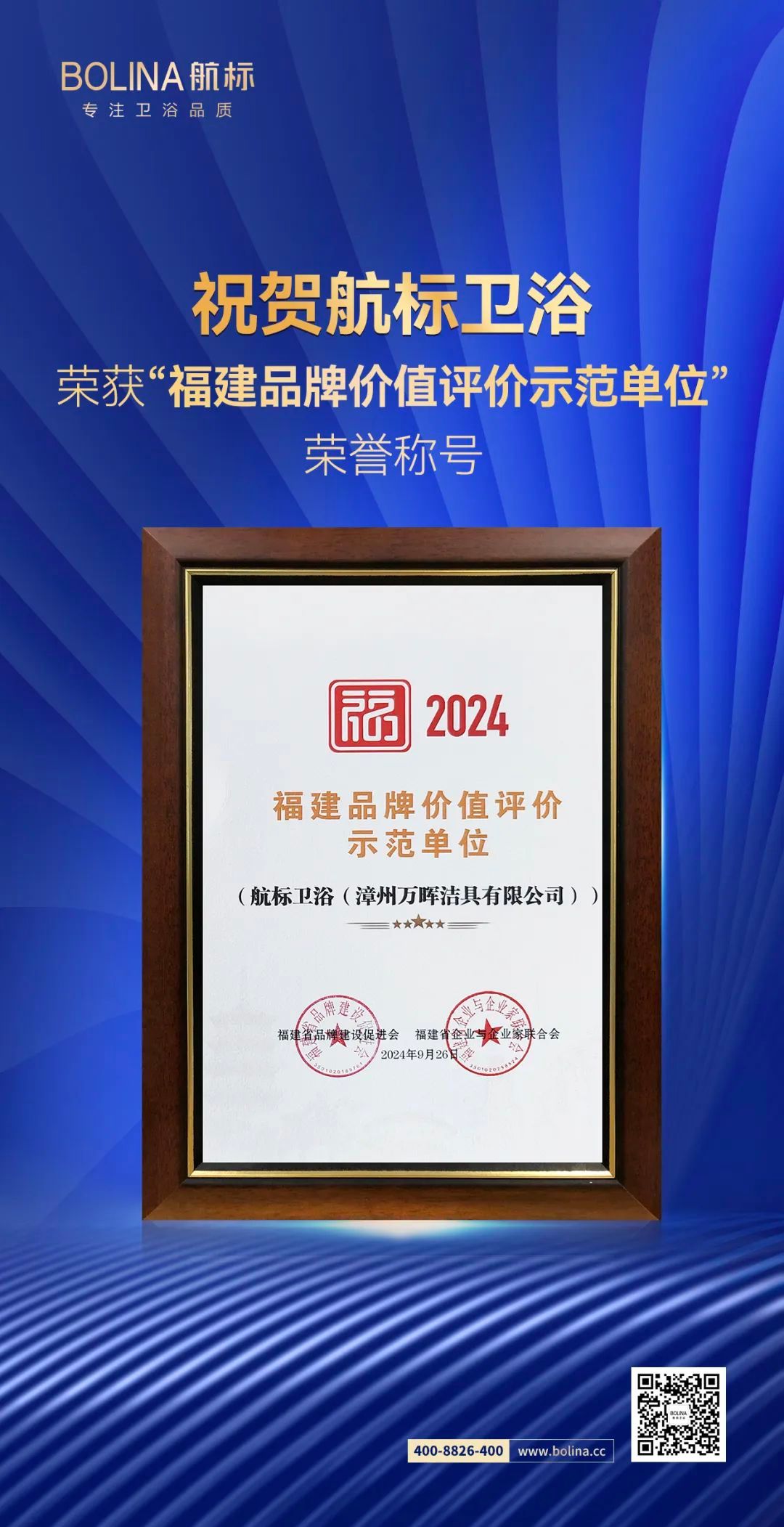 會上分別發布了區域類品牌價值評價信息和企業類品牌價值評價結果。航標衛浴榮登“2024中國品牌價值評價榜單”并榮獲“福建品牌價值評價示范單位”榮譽稱號 。