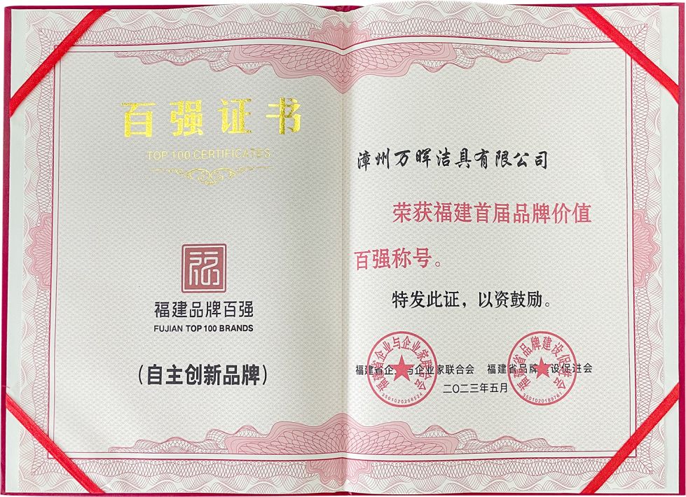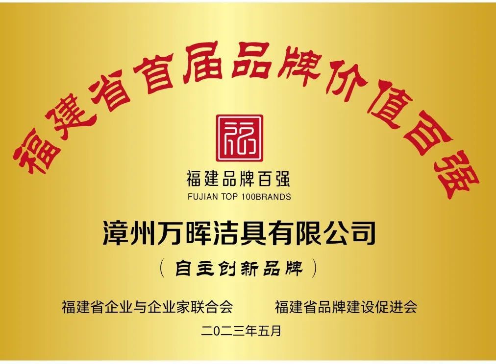 航標衛浴從品牌創辦開始,持續深耕品牌建設,在行業內品牌建設碩果累累。2023年5月7日,福建首屆品牌價值百強榜單發布暨“一帶一路”八閩知名品牌發展與合作大會在寧德舉行,會上發布了“福建首屆品牌價值百強榜單”,航標衛浴榮獲福建首屆品牌價值百強稱號。