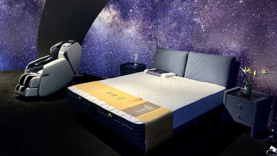 本次展會,尚馳還帶來了2023年最新產品——“天宮系列”,天宮系列可以通過設置,呈現出太空漂浮的“失重感”,讓睡眠體驗更輕盈、無壓力。