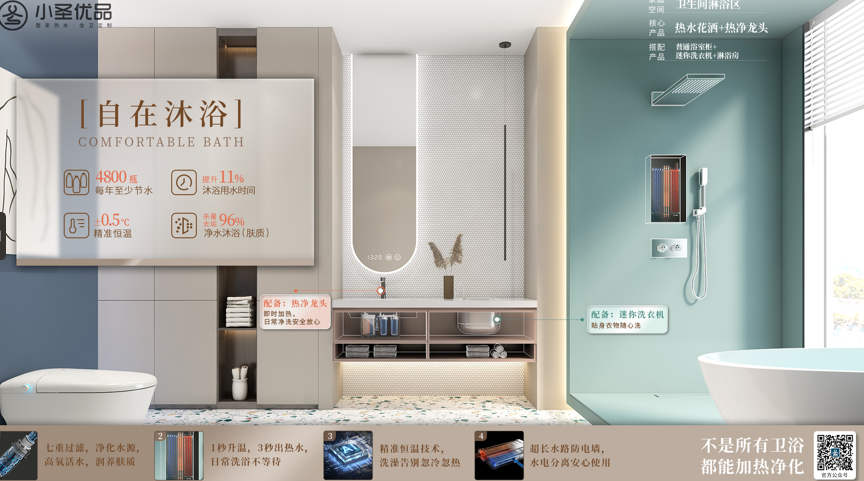以衛(wèi)浴空間為例,小圣優(yōu)品衛(wèi)浴以熱水浴室柜、熱水花灑、熱凈龍頭核心三劍客為標(biāo)志產(chǎn)品,并開發(fā)推出花灑、龍頭、浴室柜、智能馬桶、五金配件等全衛(wèi)產(chǎn)品,以整體熱水空間解決方案,滿足了年輕消費(fèi)者對(duì)健康、智能家庭用水生態(tài)系統(tǒng)與高品質(zhì)生活的雙重需求。