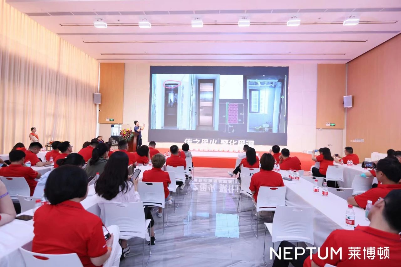 營銷中心負責人黃治鵬先生分別從通、防、藏、免、極、穩、輕、套8個角度講述全景門的功能優勢及安裝特點,并詳細講解線性地漏在不用應用場景中的多樣選擇性,洞察消費者需求,為用戶提供更貼合生活需求的地漏產品,形象生動地展示萊博頓產品在應用場景、專利技術等方面中具備的領先優勢。