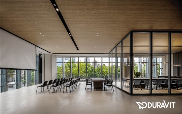 入觀內室,這座Duravit的“上海舞臺”兩層空間主要由“臺前”和“幕后”兩個部分組成。旗艦店一樓主要由中心展示區及15個產品展示套間組成,對外直觀呈現Duravit的品牌價值和美學產品,共同敘寫Duravit的臺前故事。