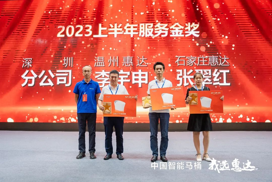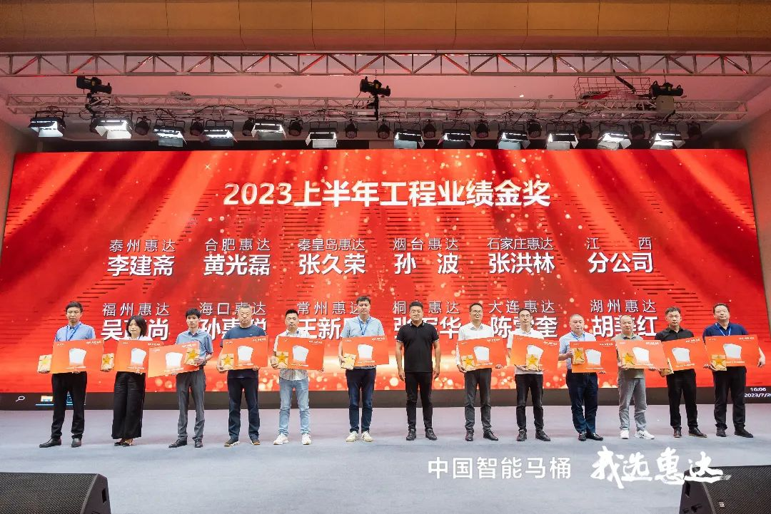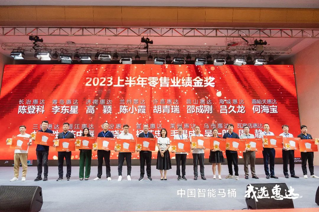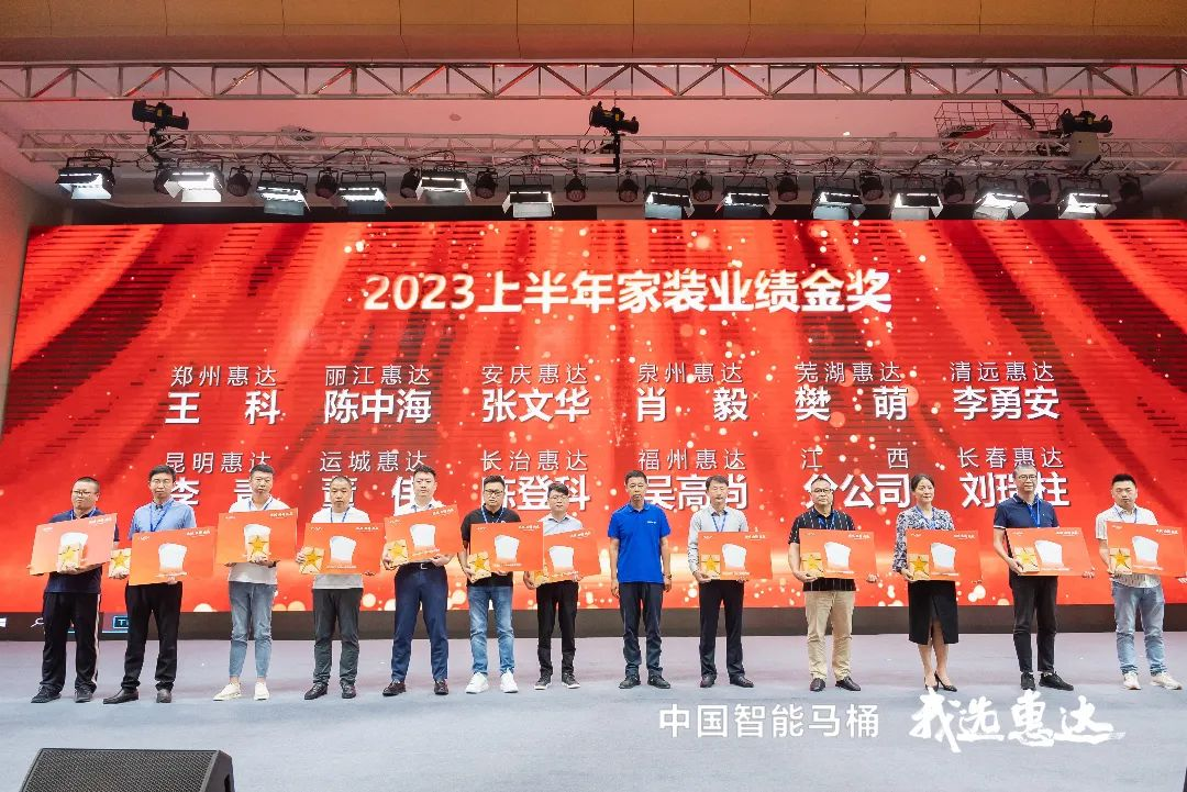 同期,惠達(dá)衛(wèi)浴還向數(shù)十位優(yōu)秀經(jīng)銷商伙伴頒發(fā)了榮譽(yù)獎(jiǎng)項(xiàng),表彰他們?cè)?023年上半年做出的努力,樹立榜樣形象。獲獎(jiǎng)經(jīng)銷商也紛紛表示,下半年會(huì)再接再厲,力爭(zhēng)超越全年目標(biāo)。