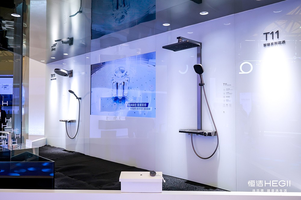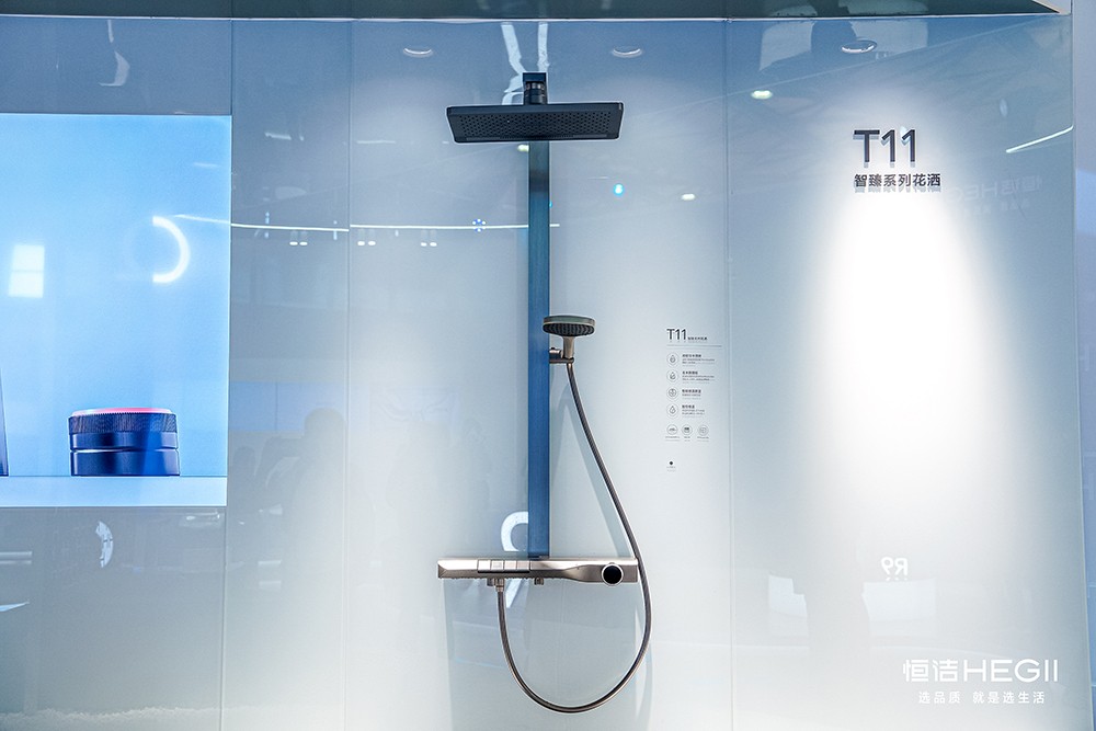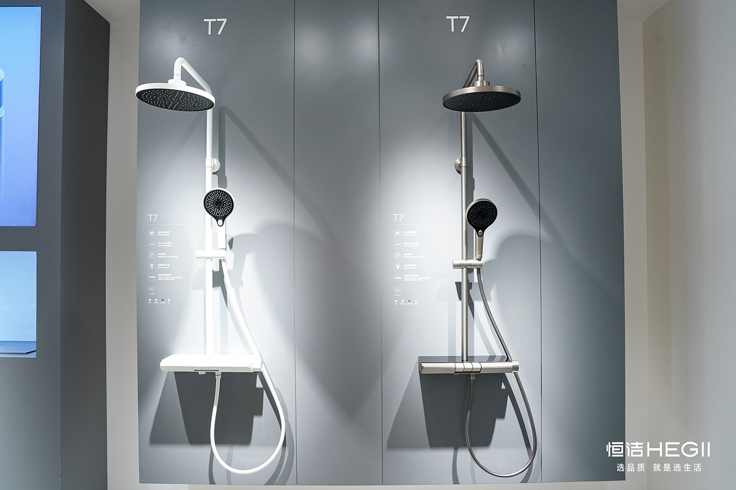 此外,配備獨立鋼琴按鍵和350mm大平臺的T7琴鍵即停花灑、以及應用水凈技術的淋浴房等新品,也都在KBC一一亮相,展示了恒潔全品類創新設計實力。