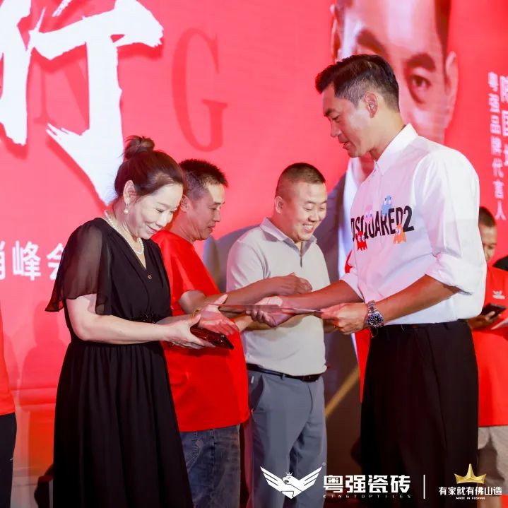 為感謝粵強(qiáng)全國(guó)瓷磚一代宗師們對(duì)粵強(qiáng)扎根市場(chǎng)和發(fā)展壯大作出的杰出貢獻(xiàn),晚宴更設(shè)置頒獎(jiǎng)環(huán)節(jié),分別為宗師們頒發(fā)“鉆石服務(wù)商獎(jiǎng)”、“新媒體卓越成就獎(jiǎng)”、“優(yōu)秀工程服務(wù)商獎(jiǎng)”、“杰出經(jīng)銷商獎(jiǎng)”、“優(yōu)秀店面獎(jiǎng)”、“飛躍進(jìn)步獎(jiǎng)”等獎(jiǎng)項(xiàng)。