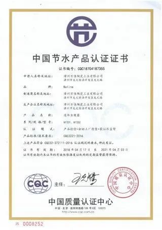 航標衛浴作為福建省技術型企業,全面執行國家水效標準認證,通過ISO14001環境管理體系認證、中國節水產品認證、韓國KS認證、歐洲CE認證、北美cUPC 單雙排水認證、EPA認證等,產品節水性能達到并超過國家標準,達到ASME標準及歐洲標準。