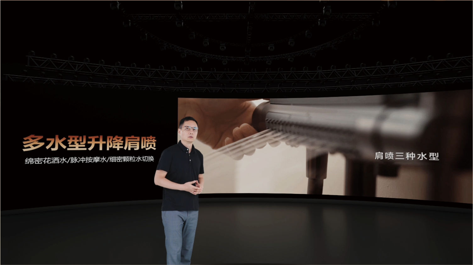 集科技與美學于一身,E700系列花灑用設計掀起花灑顏值革命:流光呼吸燈隨水流溫柔明滅,星辰大置物平臺承托洗護瓶罐如星軌有序鋪展;更深研浴室療愈——浴前預排冷水免等待,五重水路釋放治愈力:頂噴+升降肩噴+手持花灑+背噴+下出水織就立體暢淋釋壓體驗,優(yōu)雅構筑出科技美學淋浴系統(tǒng)新范式。