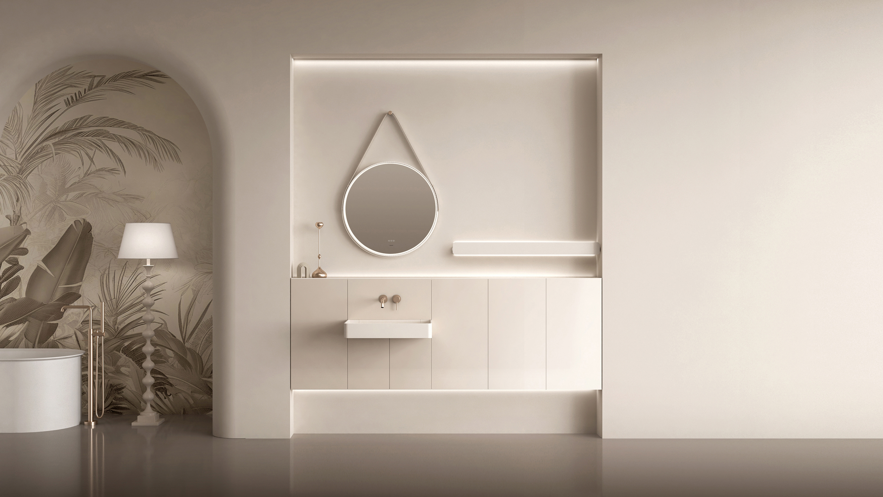 以設計的克制平衡功能的豐盈,親膚皮革包邊智能掛鏡,別致優(yōu)雅一眼驚艷,同步創(chuàng)新超窄結構主柜設計,釋放更多舒展空間,主柜頂部集成智能感應氛圍燈,人來即亮,照亮臺面高頻物品同時柔光暈染空間,讓實用與氛圍恰到好處。以生活質感呼應長期主義,在使用中沉淀出悅己的溫度。