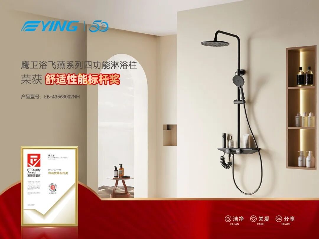 淋浴花灑出水溫度穩定性直接影響使用的舒適度,鷹衛浴水漾系列淋浴柱在這次沸騰質量評測中,獲得保真度第一,說明在眾多參評產品中,鷹衛浴的這款花灑設定的溫度跟出水的實際溫度差最小,使用更舒適。